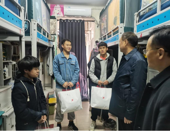 (通讯员:李丹)瑟瑟冬日,暖暖温情。12月10日上午,副董事长贺国营在公司党委书记米启超、党委副书记卫柳艳以及团学辅导员队伍的陪同下,深入员工宿舍看望部分家庭经济困难员工,为他们送去一份温暖、一份关心。