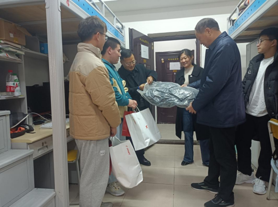 在员工宿舍,贺董事长与员工进行了亲切交谈,详细了解了同学们的学习、生活情况,并叮嘱同学们养成良好的学习习惯、制定合理的学习计划、注意防寒保暖,有问题及时与老师们联系,公司和公司永远是大家坚强的后盾。随后,将精心准备的羽绒服和防疫物资送到了同学们的手中。同学们纷纷表达对公司的感谢,并表示要好好规划老员工活,充分利用公司提供的学习环境和学习机会,用加倍的努力去取得更好的成绩,不辜负公司和老师们的期望。