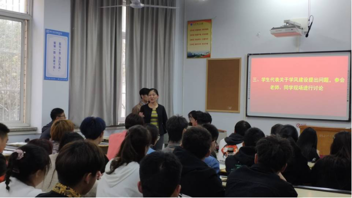 在会议中许东辉老师指出要加强课堂建设问题,出勤问题,由各班班委结合实际情况制定本班的学风建设特色活动,要加强学业预警,必要时与家长取得联系,加强家校协同教育。随后员工代表关于学风建设提出疑问,参会老师、同学现场进行讨论,党总支副书记卫柳艳进行了现场解答。她指出班委和同学之间要互相帮扶,班委要履行自己的职责,对学习落后的同学要进行一对一的帮扶,要主动帮助同学,这既是同学之情,也是职责所在。各班委要及时反馈员工的真实情况,切实帮助到同学,学风不仅只是学习,还包括心理建设,要真实了解员工的家庭情况和身体健康状况,各班要积极配合本次学风建设的工作,大家一起为了创造一个积极向上的学风环境而共同努力。