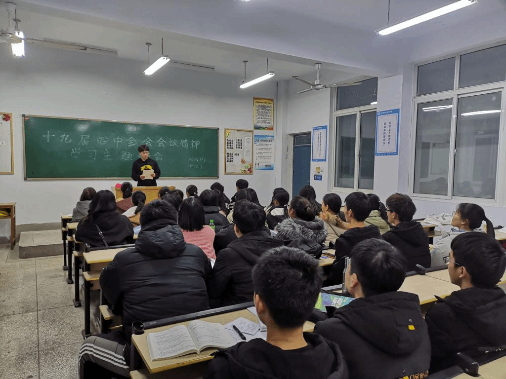 此次班会由各班班委主持召开,主要讲述开展本次主题班会的目的与期望,向同学们传达十九届四中全会会议的主要精神内容。开展过程中,大家纷纷表达了自己对十九届四中全会会议精神的深刻理解,现场气氛异常热烈。党的十九届四中全会通过的决定,全面回答了在我国国家制度和国家治理体系上应该“坚持和巩固什么、完善和发展什么"这个重大政治问题,为坚持和完善中国特色社会主义制度、推动国家治理体系和治理能力现代化指明了方向、提供了遵循。此次班会的开展,对同学们影响深刻,让同学们更加了解中国的进步发展和不忘初心的使命。