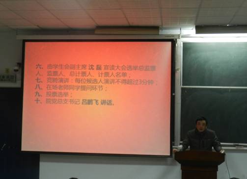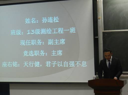 伟德国际bevictor1949团总支副书记程佳宇宣读了此次竞选候选人的资格审查报告,证实了竞选者的竞选资格,主席团成员孙兵卡、李浩杰、沈磊分别宣读了《测绘工程公司第八届员工会选举大会候选人选举办法》、《测绘工程公司第八届员工会选举大会纪律》以及此次大会的选举总监票人和投票方式、计票人名单等,让在场的同学们对于此次选举大会的各个细节方面有了清晰的认识。