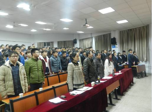 大会开幕,全体人员起立,会场奏起国歌,庄严神圣。