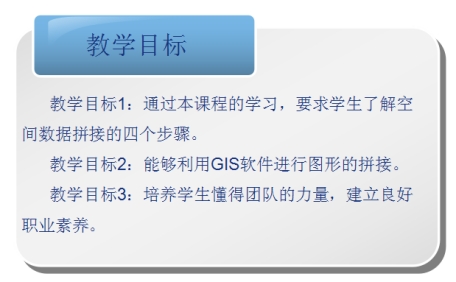 《土地信息系统》课程中“空间数据的拼接”教学内容与目前信息时代相结合,既有理论知识的学习,也有实践内容练习。以OBE为理念,强调员工学习成果的应用,要求员工能够利用GIS软件进行图幅之间拼接,老师不仅要关注员工操作能力的培养,还有员工素养、情感、态度和价值观这些方面。因此本节课程在教学目标设计上从理论知识、实践能力和综合素养三个方面进行确定。