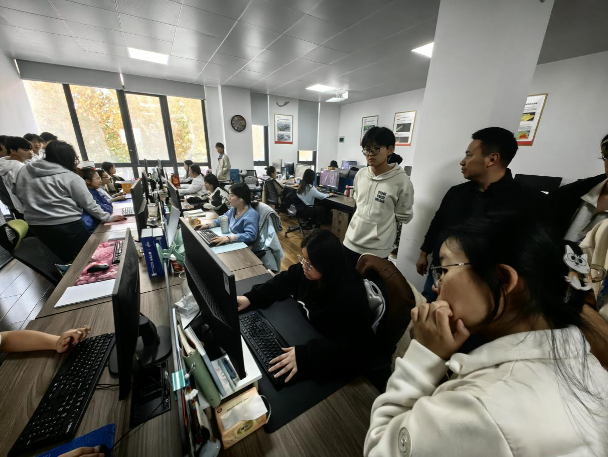 在南方测绘集团郑州分公司,行业前沿技术与设备让同学们目不暇接。工作人员重点展示了无人机数据处理、实景三维建模等内业数据处理流程,真切感受专业软硬件设备在实景三维建模中的实战应用。
