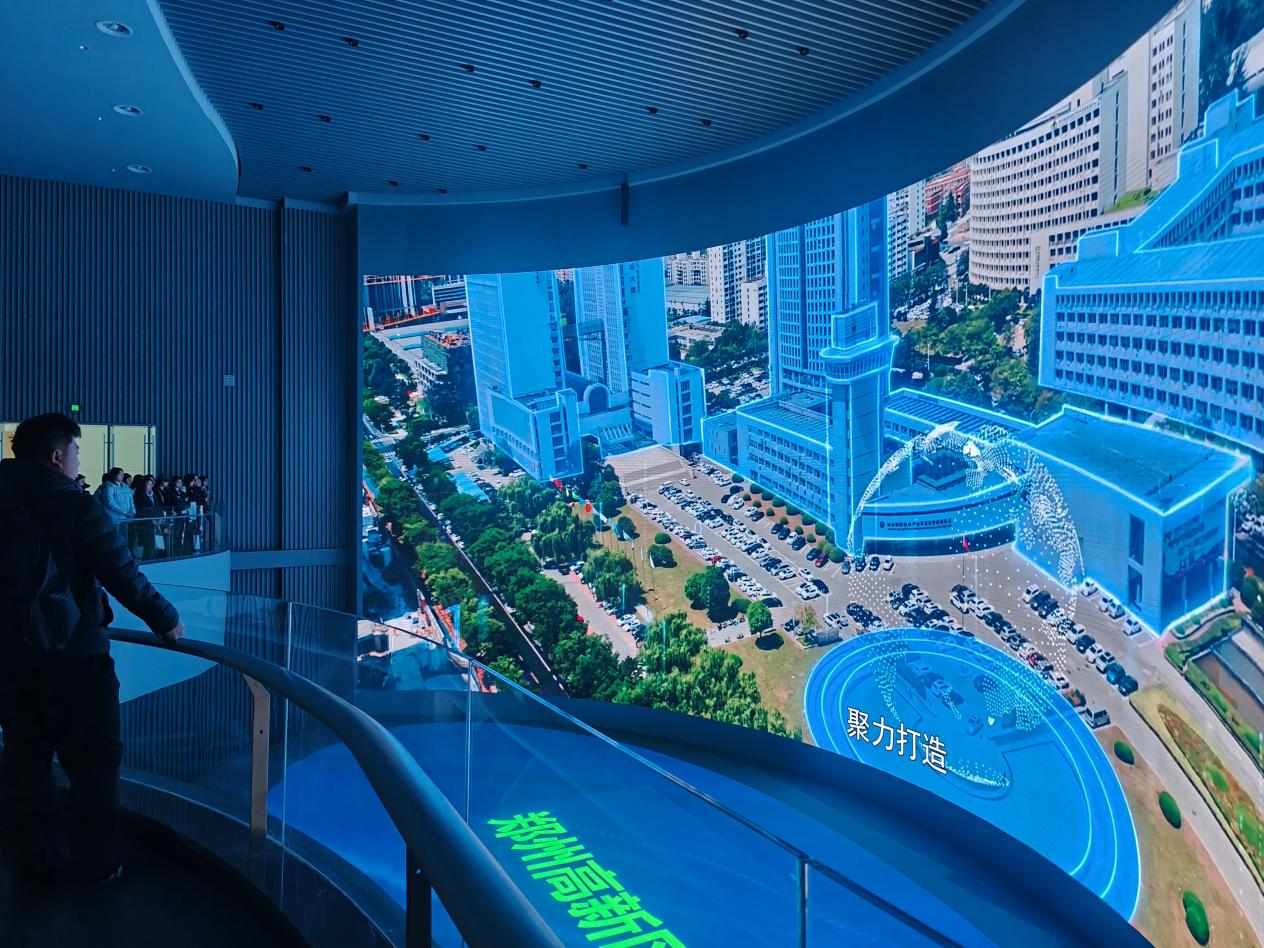 在郑州(国家)高新区智慧城市试验场,同学们实地探访了集政企交流、产业科普、运营指挥于一体的综合性场馆。作为覆盖99平方公里真实场景的创新平台,试验场“政府搭台、企业实验、多方受益”的运作模式让新生们耳目一新。通过讲解员演示,大家详细了解了32个应用场景中GIS技术、大数据在城市管理、国土规划、政务服务等领域的实践应用,特别是“一台多峰”模式下智慧治理的创新实践,让土地资源管理专业新生对“数字赋能规划”有了直观认知 。在数智治理展示区,实时更新的区域人口、产业、生态数据可视化平台,让地理信息科学专业员工深刻体会到专业技术在“善政、兴业、惠民”中的核心作用。