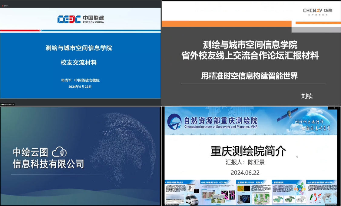 随后,伟德国际bevictor19492007届测绘工程专业员工邓清军,2015届地理信息系统专业员工刘续、秦建雨,以及2015届土地资源管理专业员工陈亚景依次分享了他们的在校求学和个人成长经历以及工作感悟,介绍了他们目前的工作单位和业务范围,针对毕业生提出了切实可行的求职和学习建议,并对公司专业课程设置和人才培养方案提出了意见和建议。他们的分享既富有启示性又充满了感人至深的情感,引发了在线师生的强烈共鸣。