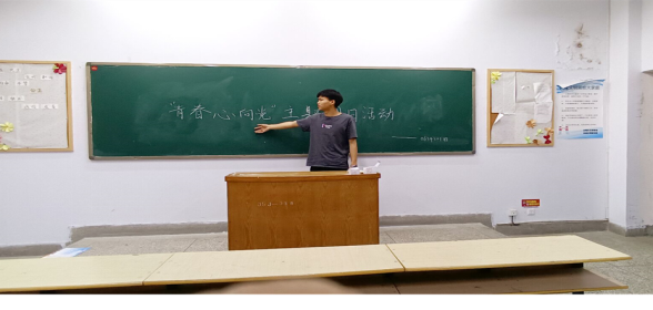 活动伊始同学们用唱国歌的方式表达对党对国的热爱,将爱国之情展现的淋漓尽致。其次,同学们一起观看了影像资料。习近平总书记说过:“时间之河川流不息,每一代青年都有自己的际遇和机缘,都要在自己所处的时代条件下谋划人生、创造历史。青年是标志时代的最灵敏的晴雨表,时代的责任赋予青年,时代的光荣属于青年。”最后,同学代表畅谈想法,立志奋发图强,以青春之我创建青春之中国。