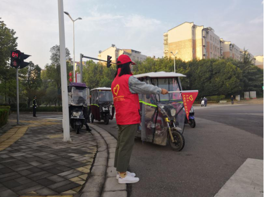10月19日上午7:30,我志愿者在交警的带领下,在平顶山市新华区祥云路与大香山路红绿灯路口引导市民文明出行活动过程中,志愿者们身穿红色文明马甲,手拿文明交通小红旗,坚守岗位、规范执勤,志愿者利用疏导旗协助交警劝导行人遵守交通规则,引导机动车拐弯时礼让斑马线上的行人,行人与车辆各行其道、有序通行,给市民出行营造畅通文明的交通环境,打造和谐安全的交通秩序。