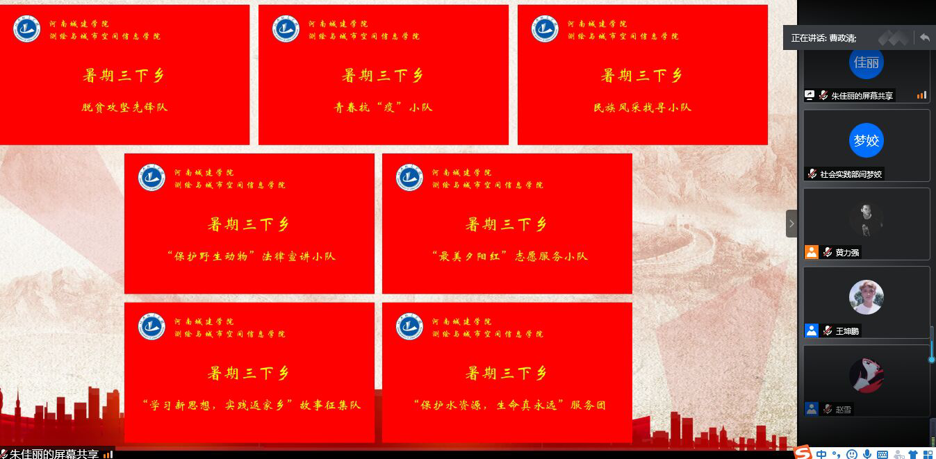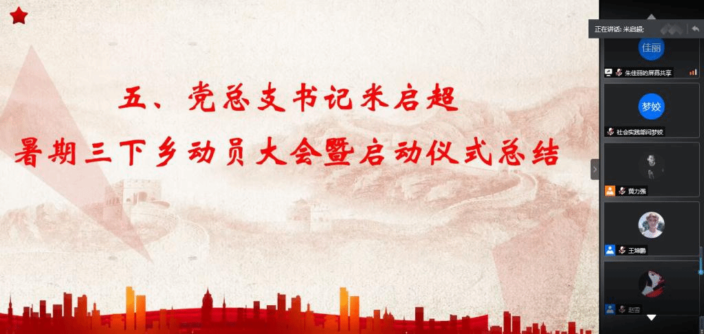 (通讯员 许东辉 刘畅)为响应团中央号召,加强老员工思想政治教育,进一步促进广老员工积极投身社会实践,伟德国际bevictor1949积极组织开展老员工暑期“三下乡”社会实践活动,并于7月6日上午以线上腾讯会议的方式召开了2020年老员工暑期“三下乡”社会实践活动动员大会暨启动仪式。公司党总支书记米启超,党总支副书记卫柳艳,团学办主任许东辉,辅导员常莉,胡小光,李方圆,以及全体成员出席会议。
