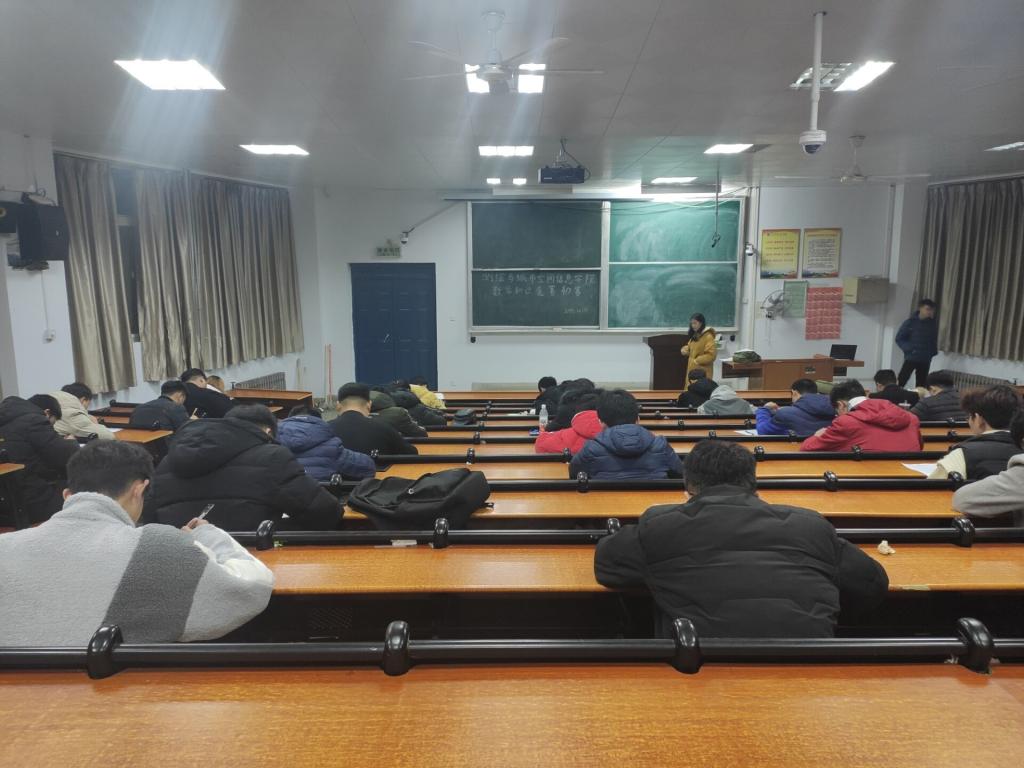 此次竞赛由各个班级自行安排五人参加。初赛和复赛分别定于12月17号在五号楼314和12月18号在五号楼207进行,参赛人员于七点整在第一排签到后开始考试。相关负责人交代过考试要求后,依次给同学们分发卷子,比赛正式开始,此次的考试内容有数学文化与数学近代历史、高等数学理论知识以及趣味数学知识。最后比赛结束,由成绩判定将由宋笑、黄欣雨、高艺敏、陈诗媛、梁勤虎五位同学代表公司参加河南城建信息公司数学知识竞赛。