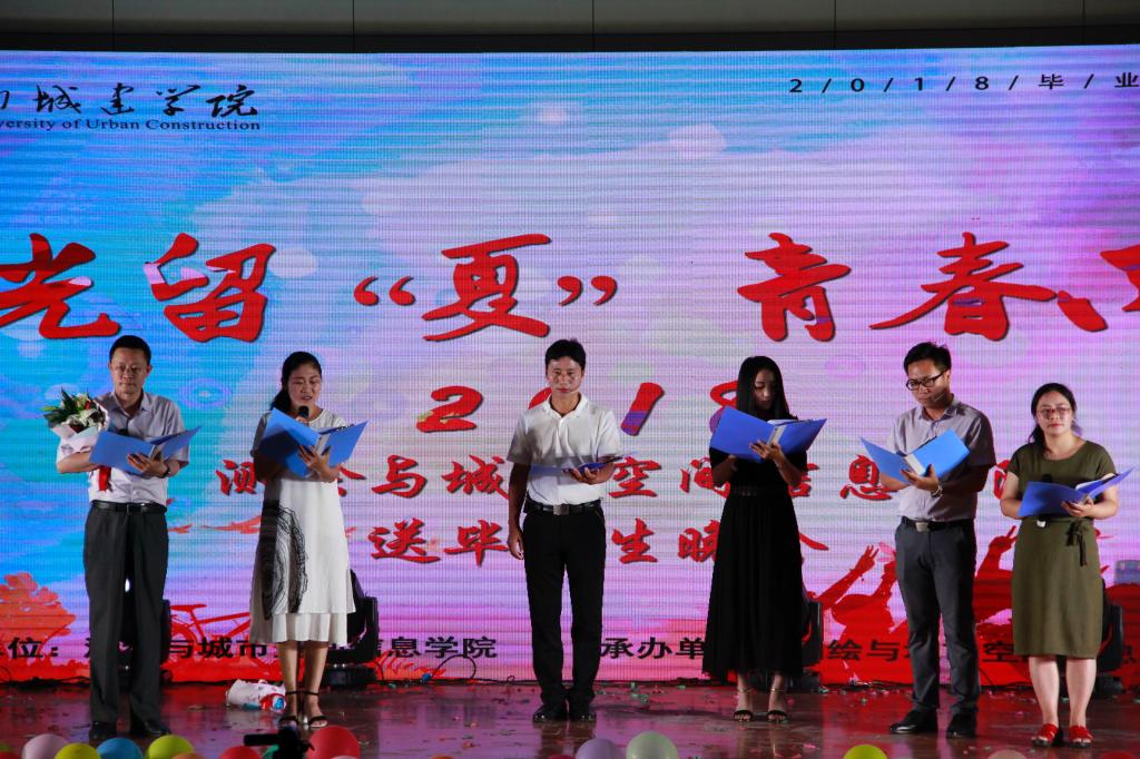 本次晚会经过长达一个月的精心策划和筹备,得到了公司领导的高度重视和大力支持。四年时光飞逝过,一朝欢聚话真情,晚会伊始,吕鹏飞书记为毕业生致辞;张宏敏经理、高松峰副经理、辅导员李艳共同为毕业生切下蛋糕的第一刀,寓意鹏程万里、前程似锦,表达了对2018届毕业生的美好祝愿。晚会节目精彩不断,表演者们用舞蹈、歌曲、相声、小品、影子戏为观众席的老师与同学们带来了一场视觉与听觉的盛宴,把晚会的热情气氛推向高潮,中间更是穿插了现场赠礼物以及微信上墙抽奖互动环节,增加了观演同学的参与度。毕业生代表上台时,播放了学弟学妹们特意录制的祝福视频。晚会上,公司辅导员们的《致毕业生的一封信》为晚会增添了浓浓的师生情,教师们用别开生面的诗朗诵,回顾了与同学们相处的美好经历,用生动诙谐的语言表达和寄托了不舍与祝福,现场观众也被离别氛围深深地感染。最后,教师、毕业生代表以及工作人员合影留念。
