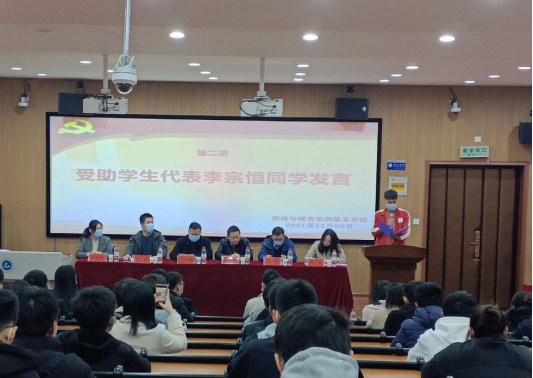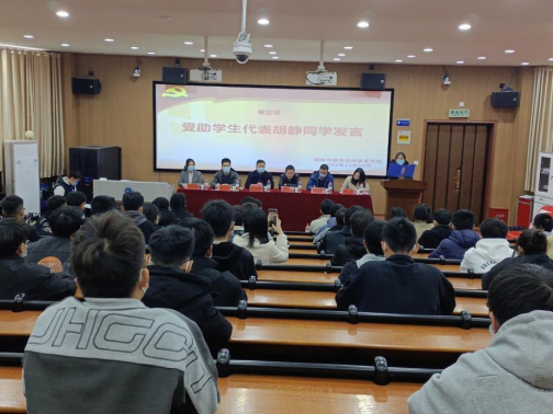 受助员工代表李宗恒同学发言