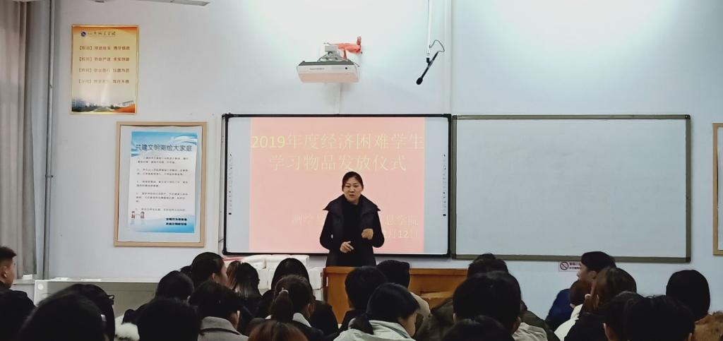 (通讯员:许东辉 张雅)伟德国际bevictor1949为做好资助工作,帮助家庭经济困难员工有更快乐健康的学习生活,于12月12日中午,在5号教学楼110教室举行“落实精准扶贫政策,发挥资助育人作用”的困难生资助活动。公司党总支副书记卫柳艳、团学办任许东辉、辅导员常莉、李方圆以及本次给予资助的90余名员工参加,活动由许东辉主持。
