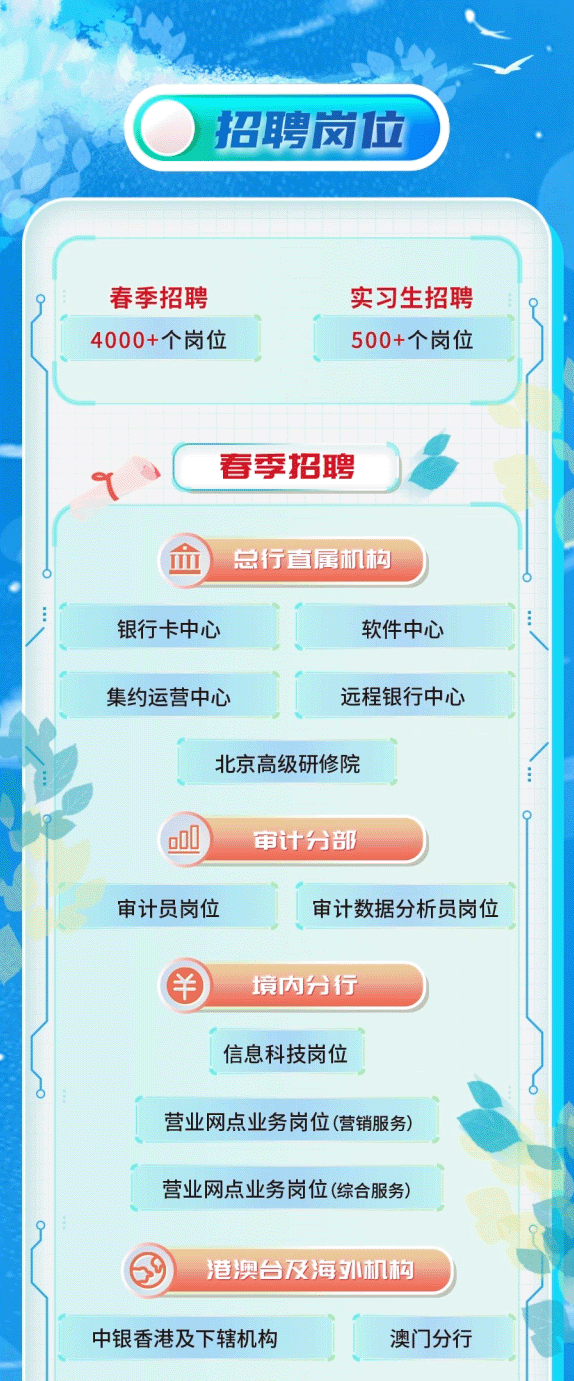 招聘单位:中国银行