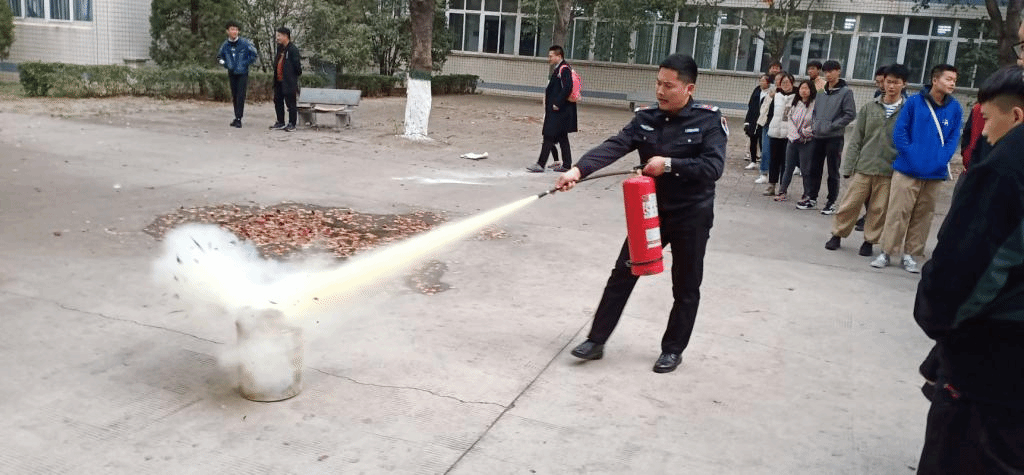 活动伊始,由李教官带领大家在五号楼209会议室讲解了火灾发生的一些案例,通过以往的惨痛案例,使同学们深刻认识到消防安全的重要性。并从实际出发,分析火灾发生的可能原因,系统地向大家讲解了在遇到火灾时的一些紧急灭火和自救的方法,帮助同学们解决消防意识上的误区。随后,同学们跟随杨勇教官的步伐来到室外进行实地灭火操作。在明白如何正确检查并使用灭火器的方法后,一个个自信的上前完成灭火。最后在许主任的带领下合影留念,本次活动就此圆满结束。