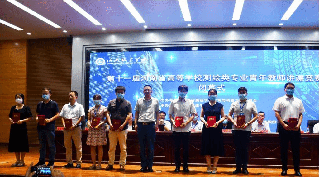 河南省测绘类专业青年教师讲课竞赛每两年举办一次。本次竞赛分本科一组、本科二组和高职组同时进行。本科组竞赛共设置《测量学》《地理信息系统》《GNSS》《摄影测量与遥感》四门课程;高职组共设置《工程测量技术》方向、《地理信息系统技术应用》方向两项课堂教学竞赛内容及1:1000数字地形图测绘实习、工业厂区施工测量实习两项实践教学设计竞赛内容。