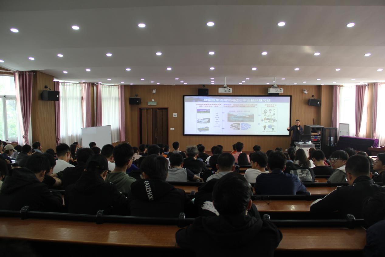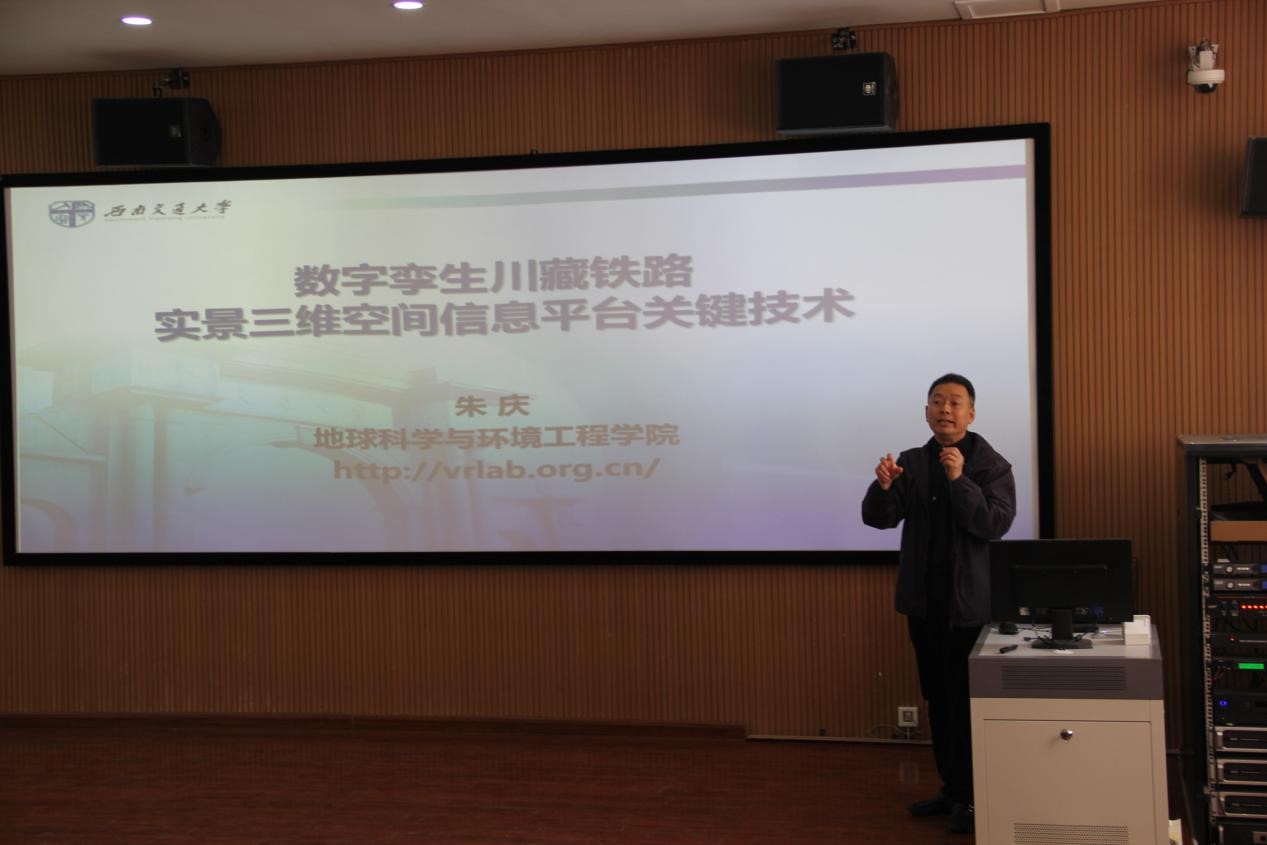 (通讯员 周鹏超)2019年5月9日上午,朱庆教授应邀来公司进行了“数字孪生川藏铁路实景三维空间信息平台关键技术”学术报告。公司领导班子、专业教师、员工200余人聆听报告,报告由经理张宏敏主持。朱庆教授介绍了数字孪生川藏铁路实景三维空间信息平台关键技术:从DEM到真三维GIS,从3D地表到动态三维环境的发展过程;川藏铁路面临海拔、板块活动、山地灾害和生态环境的挑战;川藏铁路最大的创新体现在绿色和智能方面;数字孪生是川藏铁路信息化的重要标志,有着颠覆性的创新思路。在报告后的互动交流环节,朱庆教授与老师、员工进行了热烈的讨论与交流。朱庆教授深厚的学术造诣扩大了在座师生的学术视野和知识范畴,提升了在座师生的创新意识和科研能力。