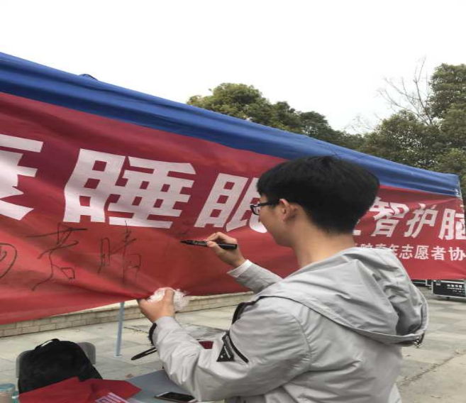 早上八点,公司青年志愿者协会的志愿者们在喷泉广场下方,搭建帐篷,设立调研站点。志愿者们给路过的同学发放关于“睡眠问题”的调查问卷,并与其讨论如何规划作息健康规律的生活,向同学们讲解睡眠问题的重要性。同学们认真地填写调查问卷,并在“关注睡眠”的倡议书上签下自己的名字,活动进展十分顺利。