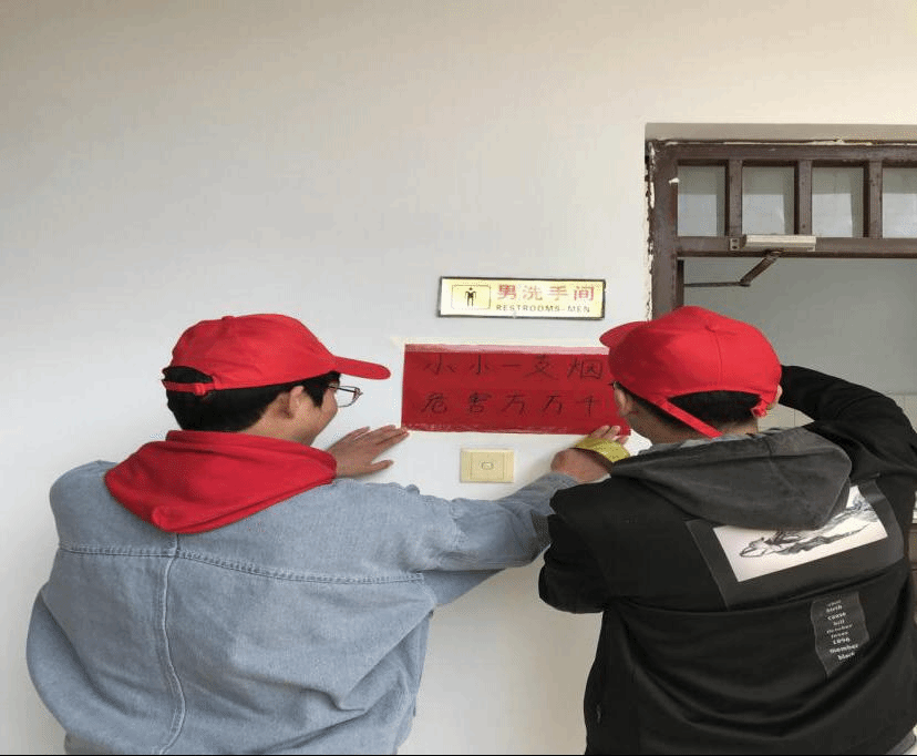 活动中,青协人员剪出了写有标语的三十余张纸,志愿者们分头行动,将标语贴在五号楼的A、B、C座的每一层楼里。最后,在五号楼门口开展了拉横幅活动。这次活动不仅号召了全校师生减少吸烟、拒绝吸烟,还为集团增添了一抹色彩靓丽的画面。
