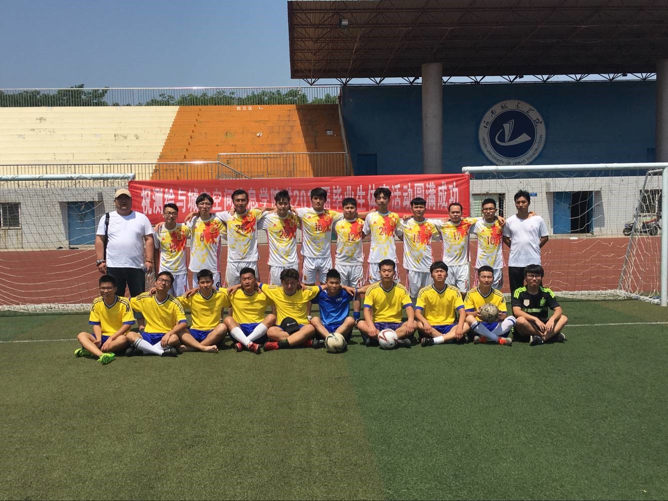 比赛双方是毕业生代表队和在校生代表队,裁判员一声哨响,双方足球队员势如破竹,场上的每一位足球健儿都意气风发,斗志昂扬,演绎着现代足球的激情与热烈。他们在炎炎烈日下、茵茵球场上奋力奔跑,他们相互配合,默契十足,场面精彩纷呈。球场上他们偶有摔跤,这也寓意他们今后的人生道路会有坎坷,希望他们能够像在足球场上一样,从哪里跌倒便从哪里爬起来,继续未来的路,做勇敢坚强的自我。整场比赛和谐却又不失精彩,真正赛出了友谊,赛出了风采。