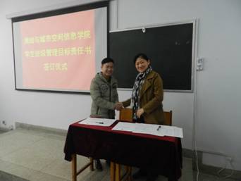 最后,班级辅导员与各班班委代表签订了班级管理目标责任书。