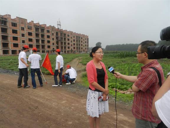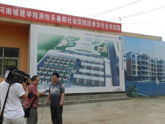接下来记者采访了测绘系2012暑期社会实践郏县李口镇中心村服务队的队长李向东同学,李向东向记者介绍了本次社会实践服务的主要内容,为李口镇新型农村社区建设用地测绘详细的地形图,为中心村两条主要干道放样、控制实际位置,用所学专业知识服务社会、为加快中心村建设贡献自己的力量。