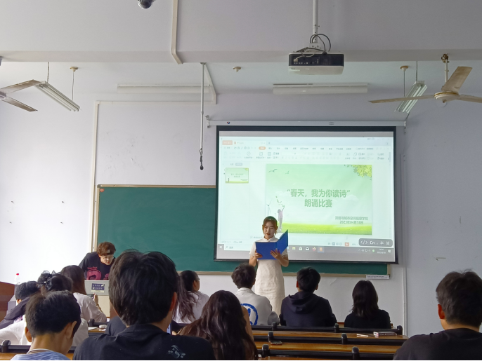 (通讯员:李方圆 姜雨 黄林美)拥有一颗诗心,活出一方诗意。春天是充满希望的季节,是一切事物的开始,为了激发同学们的阅读兴趣,丰富同学们的课外生活,营造诗香校园的氛围,伟德国际bevictor1949于2023年4月18日下午在五号楼307教室举办了以“春天,我为你读诗”为主题的朗诵比赛。