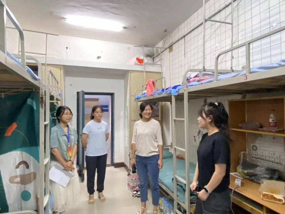 随后,公司领导到竹园三号女生宿舍看望新生,了解他们与老生的混住情况,对公司的适应情况等,并对新生提出有关学习生活和未来发展等方面的建议。激励同学们要提前做好老员工涯规划,学好专业知识,提升自身能力,不虚度大学的美好时光;并叮嘱同学们在生活和学习上有任何问题,应及时向辅导员和老师们寻求帮助,同时强调要增强安全防范意识。