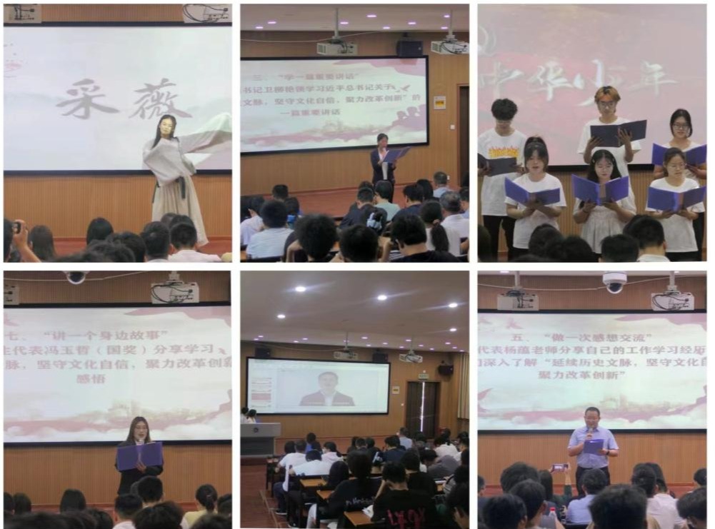 本次活动主题“延续历史文脉,坚守文化自信,聚力改革创新”。活动共分为“学一篇重要讲话”“舞一曲中国文化”“作一次感想交流”“看一部视频短片”“讲一个身边故事”“诵一首中国少年”等环节,引导全体师生认识到传承中华优秀传统文化、改革创新中国文化的重要性。