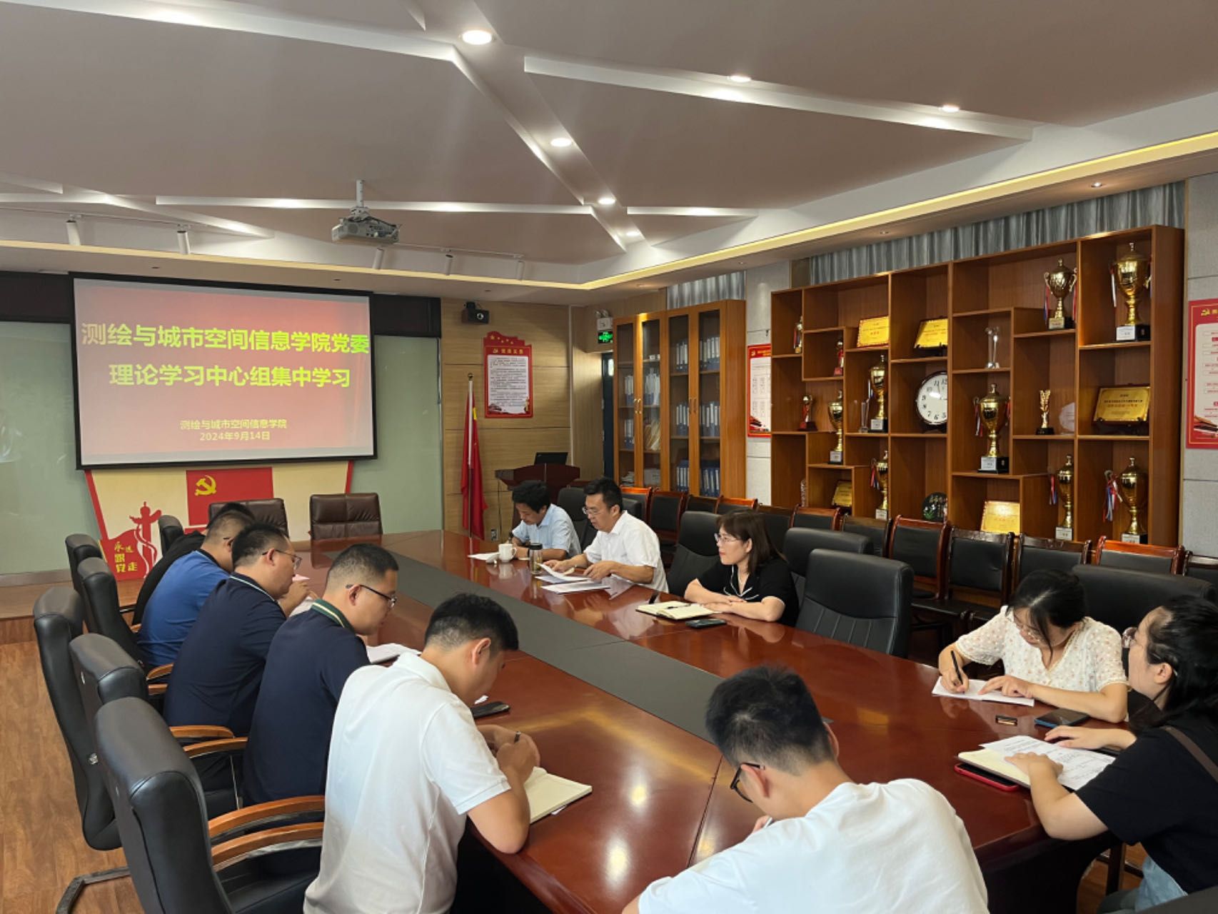 会议开始,全体成员通过学习强国集体学习了《中国共产党第二十届中央委员会第三次全体会议公报》、《中共中央关于进一步全面深化改革、推进中国式现代化的决定》、《习近平总书记关于<中共中央关于进一步全面深化改革、推进中国式现代化的决定>的说明》等视频、音频内容,围绕深刻认识党的二十届三中全会的重大意义、全面准确理解全会主题和重点任务、准确把握全会关于深化教育科技人才体制机制一体改革的重大部署。