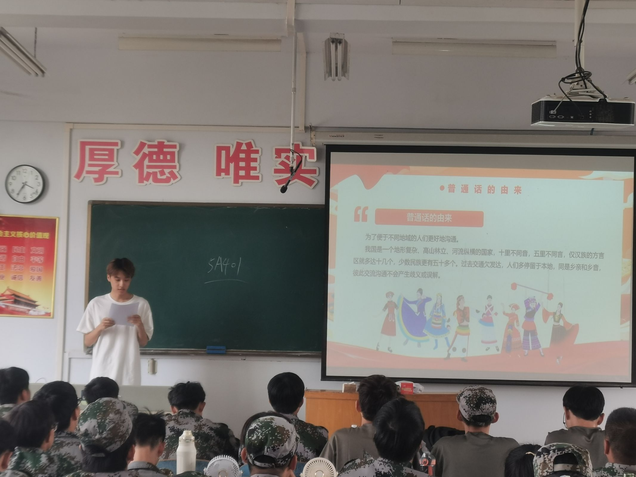 讲座开始前,主讲人赵治程首先介绍了本次活动的目的和意义,为大家讲解了普通话的起源、发展和特点等基本知识。讲座中设置了读绕口令的互动环节,使得同学们在轻松愉快的氛围中巩固了所学的普通话知识。最后,由文艺部部长史雨馨为演讲做补充。