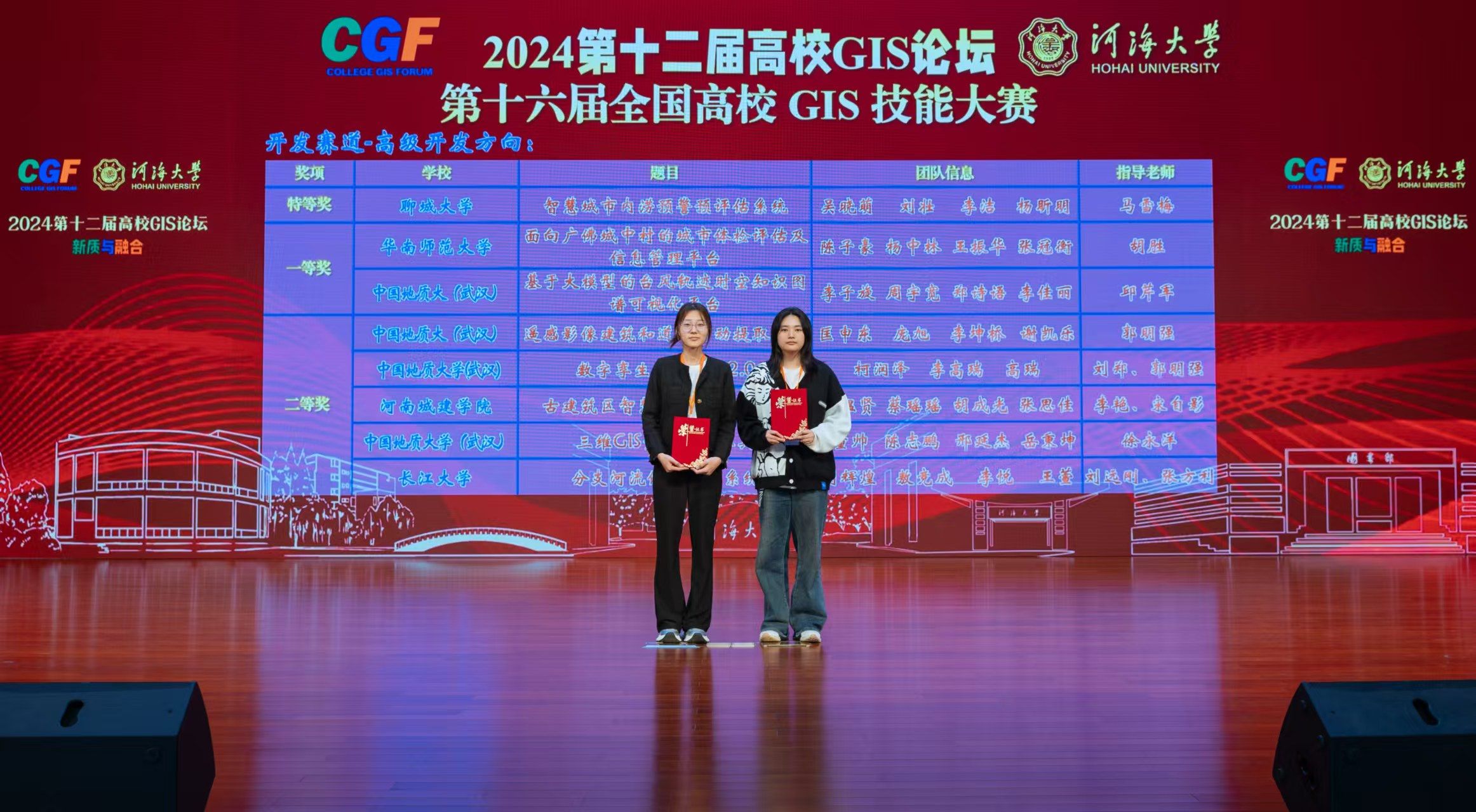 (通讯员:李艳 宋自影)2024年11月1日,由中国测绘学会、中国地理信息产业协会主办,国家地理信息系统工程技术研究中心、地理信息系统产业技术创新战略联盟支持,中地数码集团承办的2024年第十二届高校 GIS 论坛暨第十六届全国高校 GIS 技能大赛决赛在江苏省南京市河海大学盛大启幕。由伟德国际bevictor1949教师李艳、宋自影指导,刘温贤、蔡瑶瑶、张思佳、胡成光四位本科员工组成的参赛团队表现出色,在开发赛道(高级开发方向)获二等奖。