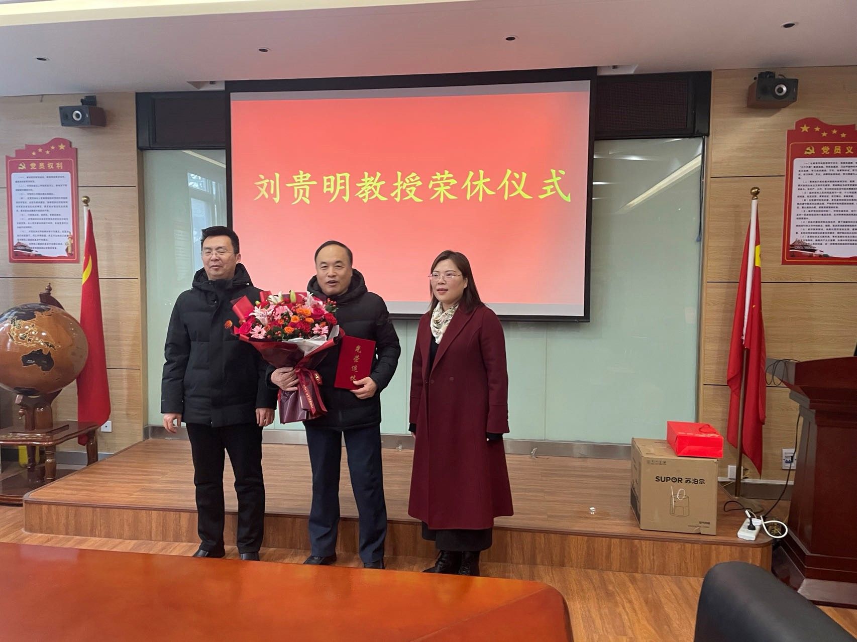 接下来,公司领导向刘贵明副教授赠送了美丽的鲜花和荣誉证书,以此表达对其多年辛勤工作的感激与敬意。随后,教师代表纷纷发言,分享了与刘贵明副教授共事的美好回忆,言语中充满了对前辈的敬仰与不舍。