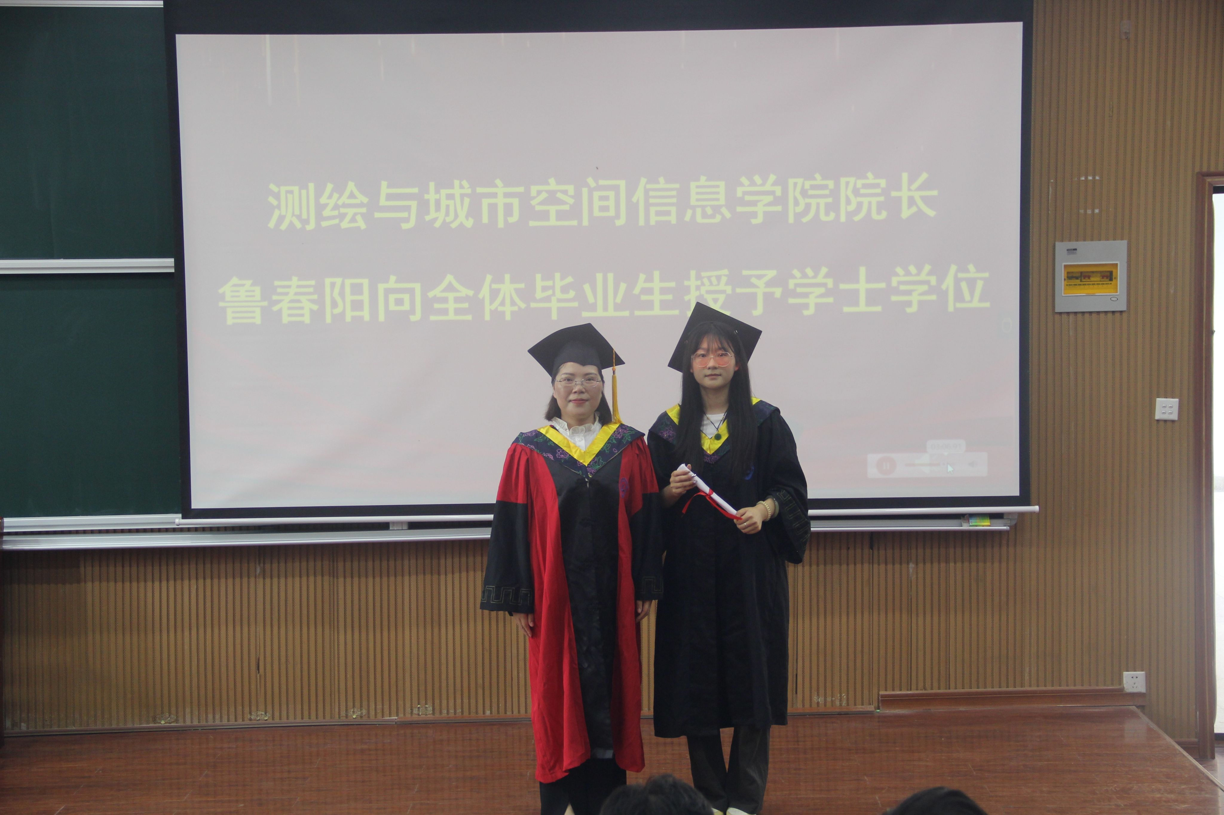 随后,经理鲁春阳为公司2025届毕业生拨苏正冠,授予学士学位并合影留念。