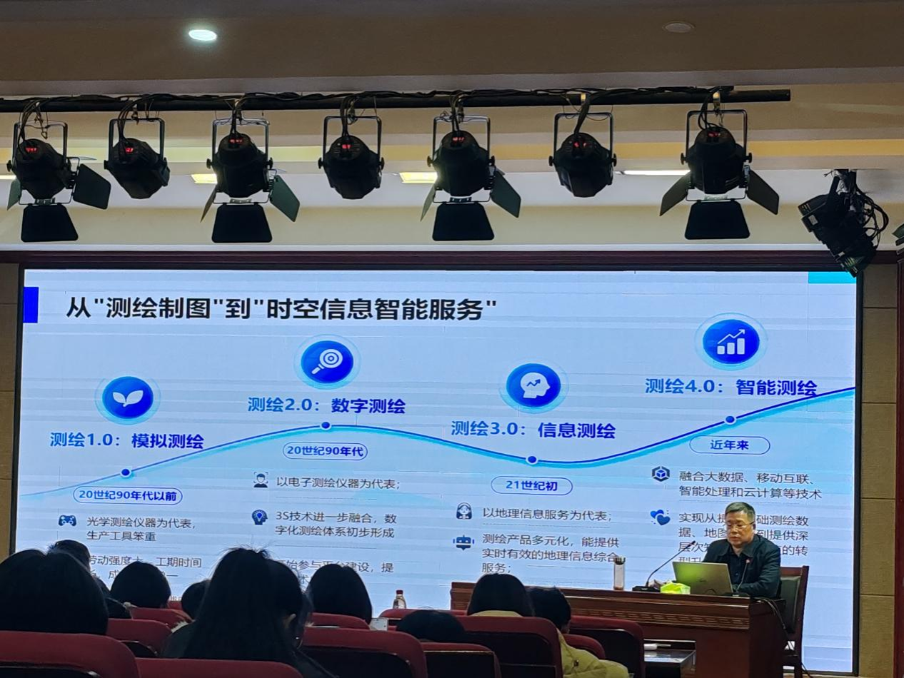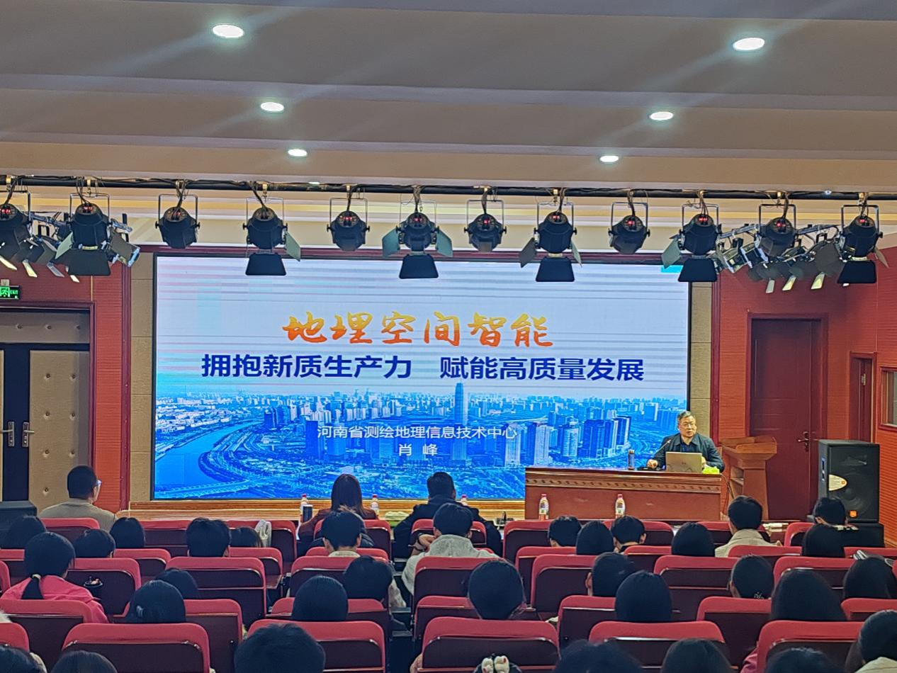 11月20日下午,河南省测绘地理信息技术中心党委委员、副主任肖峰应邀至公司作题为《地理空间智能:拥抱新质生产力,赋能高质量发展》的学术报告。公司党委书记武伯军、副经理潘传姣、副经理杨锋和100余位师生共同聆听了报告。报告会由杨锋主持。